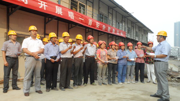 “山高高不過天,地大大不過天,天大的事情叫安全,它和千家萬戶緊相連……”,6月21日一大早,在中遠公司碧水云天·中央城A區(qū)施工現(xiàn)場,整齊嘹亮的《安全為天》歌曲唱出了工人們的心聲。 據(jù)悉,6月份是全國安全生產(chǎn)月,建筑行業(yè)作為高危行業(yè),安全生產(chǎn)是建筑施工重中之重。 據(jù)該公司相關負責人介紹,為全面提高工人安全防范意識,貫徹落實國家相關安全政策法規(guī),該公司在安全生產(chǎn)月伊始,相關安全負責人就制定了“安全生產(chǎn)月”活動方案。包括制定《中遠公司防汛搶險應急救援預案》;在工地上懸掛安全標語條幅;工地自查自糾安全隱患;對工人利用早點名時間進行安全生產(chǎn)知識培訓。而學唱安全歌曲,作為一項既能促進安全工作有效開展,又能愉悅工人身心的活動,受到了工人們的一致歡迎。