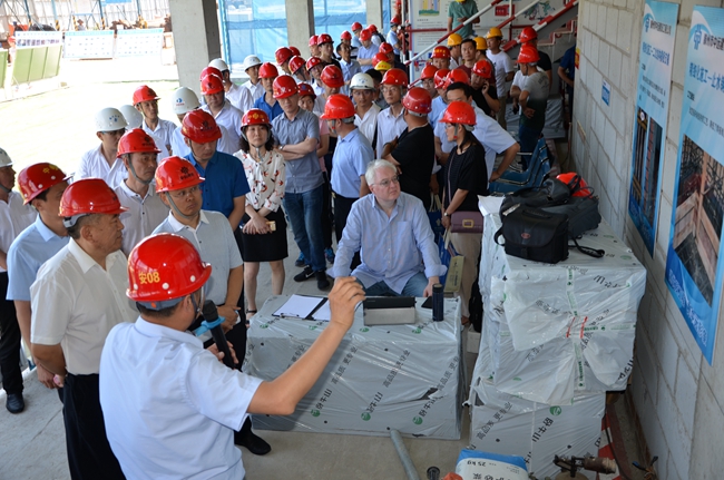 6月13日上午,市住建局召開建筑工程安全生產(chǎn)標(biāo)準(zhǔn)化建設(shè)現(xiàn)場交流觀摩會在中房·緹香郡二期施工現(xiàn)場舉辦。市住建局局長朱秋原帶隊,局安監(jiān)中隊全體成員及局屬各單位單位黨政負(fù)責(zé)人、分管領(lǐng)導(dǎo)和有關(guān)安全管理人員參加觀摩。房管局局長徐俊、局黨總支書記孔德良陪同參觀。   會上,朱秋原局長強(qiáng)調(diào),當(dāng)前正值夏季高溫季節(jié),各單位要充分認(rèn)識高溫酷暑給安全生產(chǎn)帶來的不利影響,要以對現(xiàn)場作業(yè)人員生命和健康高度負(fù)責(zé)的態(tài)度,積極做好各項防范工作,堅決防范因高溫天氣引發(fā)的各類生產(chǎn)安全事故。 該項目由市房管局所屬的中房房地產(chǎn)開發(fā)公司投資建設(shè),是原魯南機(jī)床廠區(qū)域拆遷改造工程,同時也是棗莊市建筑工程安全生產(chǎn)標(biāo)準(zhǔn)化建設(shè)示范項目。該公司以爭創(chuàng)省市級安全文明工地、省優(yōu)質(zhì)結(jié)構(gòu)杯、泰山杯、魯班獎、國家廣廈獎等榮譽(yù)為創(chuàng)優(yōu)目標(biāo),編制了創(chuàng)優(yōu)計劃,進(jìn)行層層分解,責(zé)任到人,深入推進(jìn)了BIM技術(shù)的廣泛應(yīng)用,落實了裝配式住宅和精裝修住宅建設(shè),啟動了緹香郡二期“被動式超低能耗建筑”示范項目和綠色智慧住區(qū)示范項目建設(shè)。   通過現(xiàn)場觀摩交流,住建系統(tǒng)兄弟單位的同仁紛紛表示,要以該項目為標(biāo)桿,積極推廣文明安全施工、低碳環(huán)保理念、智慧社區(qū)建設(shè)等先進(jìn)理念和優(yōu)秀做法,不斷提升自身項目安全標(biāo)準(zhǔn)化施工建設(shè)水平。