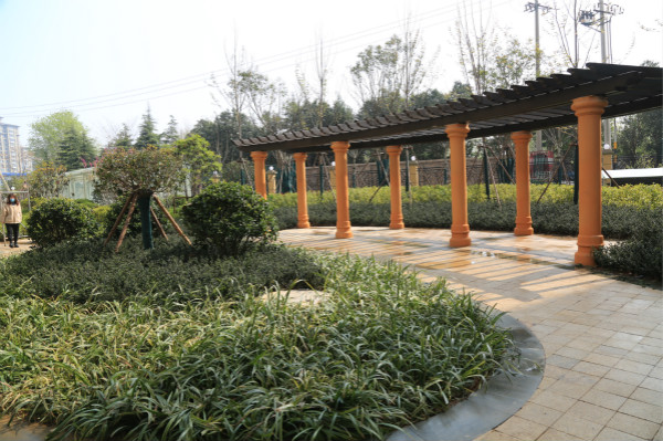奧體花園二期綠化項目面積約26000平方米,施工項目包含回填土工程;雨污水、化糞池工程;鐵藝圍墻;小區(qū)道路、園路廣場鋪裝、綠化、景墻、坐凳、置石、健身器械、活動廣場、景觀亭、廊架等景觀小品、綠化給水系統(tǒng)、電氣照明系統(tǒng)等。綠化共栽植喬灌木450多株,球類300余個,小苗26萬顆,草坪鋪設(shè)14000平方米。